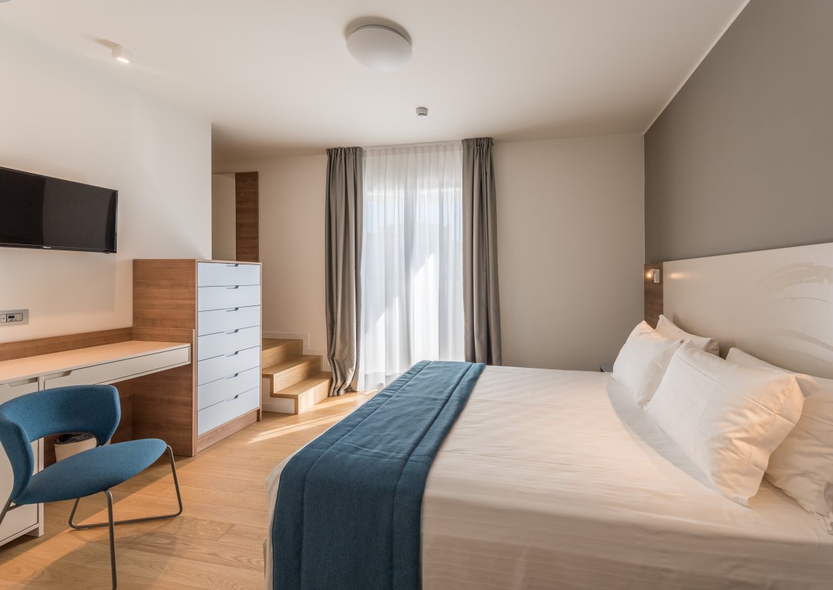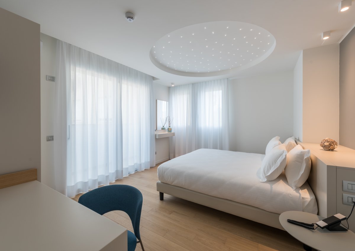 Camere e Suites spaziose e dai toni naturali | Comfort e tecnologia di un Hotel a 4 stelle | Zona benessere con piscina riscaldata coperta e saune | Biciclette e Palestra Technogym | Parcheggio auto riservato | Da Maggio a Settembre ombrellone e lettini in spiaggia privata a 300mt dall'hotel