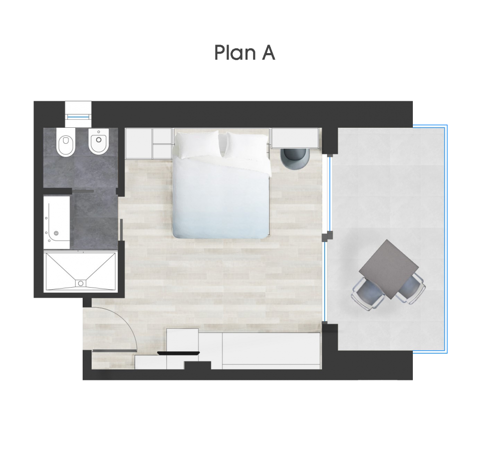 Категория"PLAN A" – макс. 2 человека Двухмесный матрас 180x200cм, с возможностью добавить детскую кроватку, для детей от 0 до 2-х лет. Возможнось добавить дополнительно «пакет услуг» с использованием мини-кухни, стиральной машины и кухонным набором.